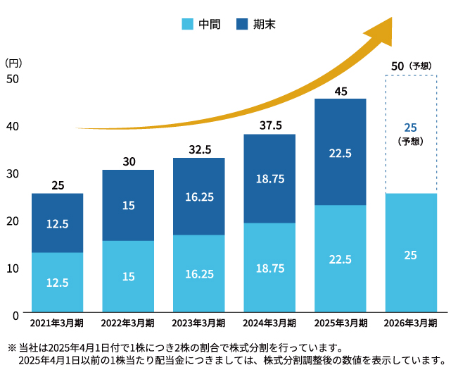 なお、足元の事業環境は依然として不透明な状況が続いており、業績予想は当期の事業進捗等を踏まえて修正いたしましたが、2025年度の期末配当につきましては、当初予想のまま、2024年度期末比で2.5円増となる1株当たり25円とする予定です。